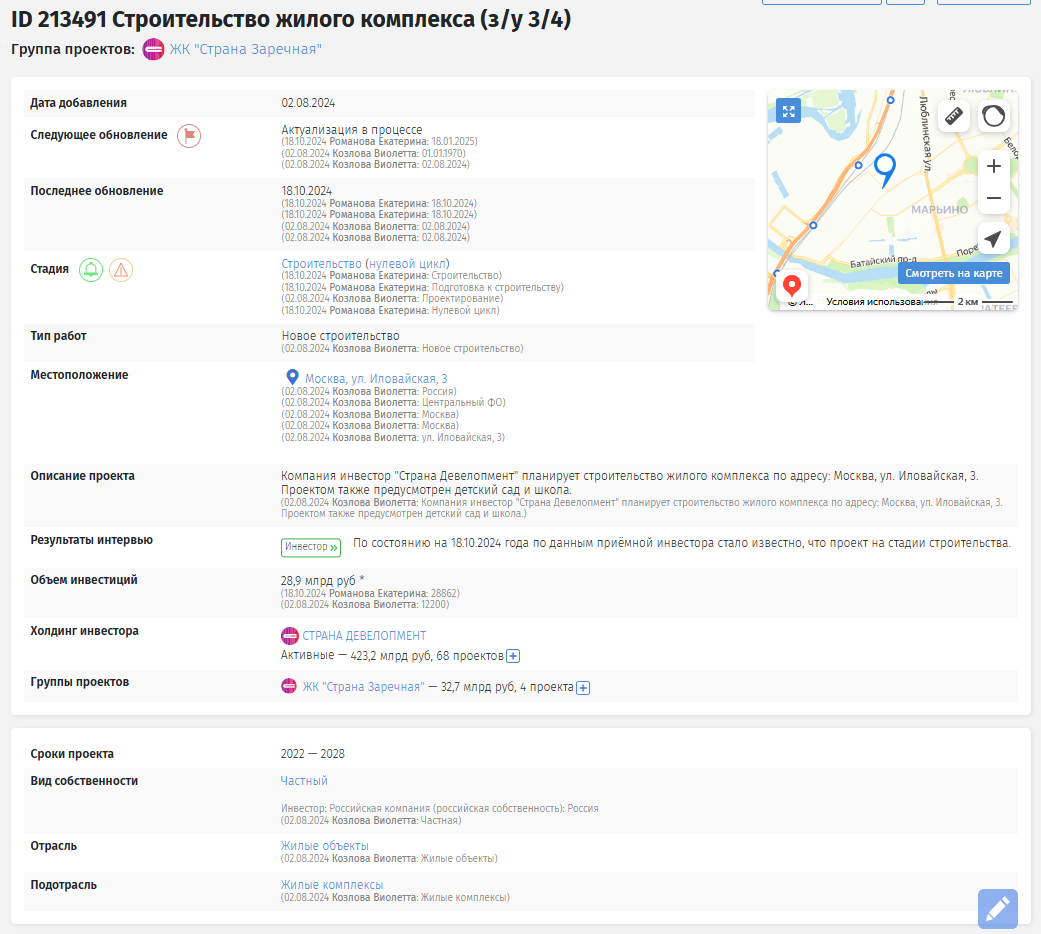 Рис. 1. Информация об инвестиционном проекте в отрасли «Жилые объекты».