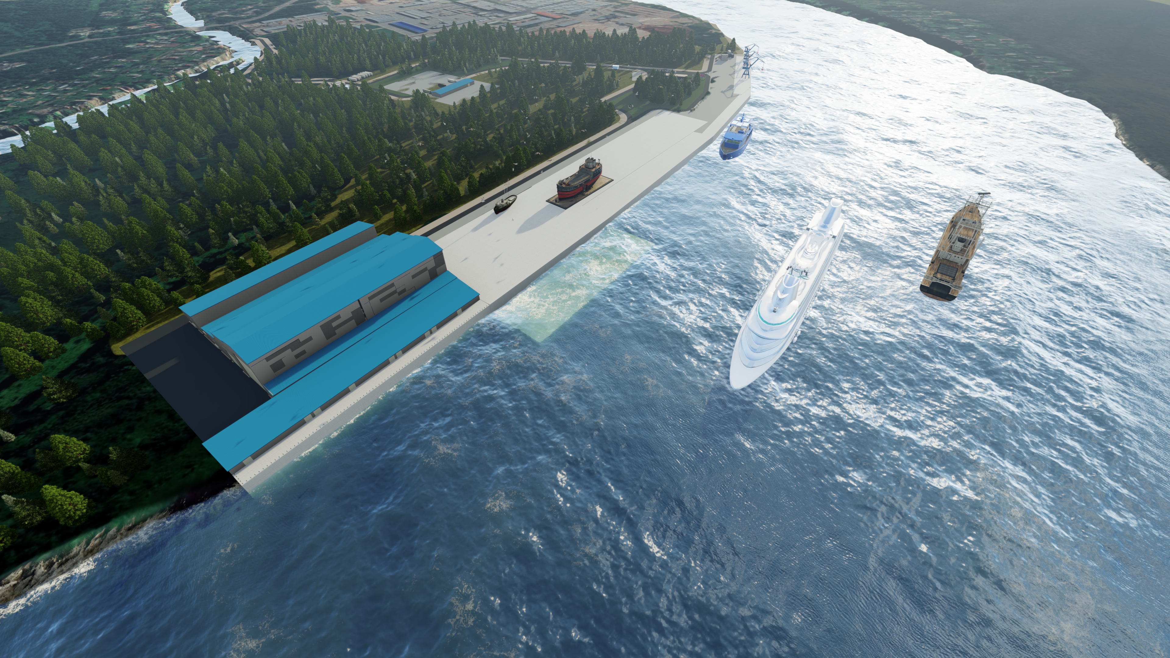 Специалистами компании определены параметры компетенций предприятия, включая ремонт корпусов, переоборудование, капитальный ремонт и техническое обслуживание различных типов судов. Разработаны принципы и технологии, которые будут использоваться для судоремонта. Также описаны технологии и организация процессов, проведен анализ экономической целесообразности и технической осуществимости проекта, подобрано необходимое оборудование, разработан комплексный план транспортной логистики предприятия. Проведена оценка капитальных затрат на строительство портовой инфраструктуры, дноуглубления, производственного и складского комплекса, административно-бытового корпуса, причального фронта и других объектов инфраструктуры. Также была поведена предварительная оценка необходимых энергетических мощностей и потребностей в инженерных ресурсах, разработаны укрупненные планировочные решения по участкам и зонам, составлен предварительный календарный график проектирования, строительства и получения согласований в рамках проекта.