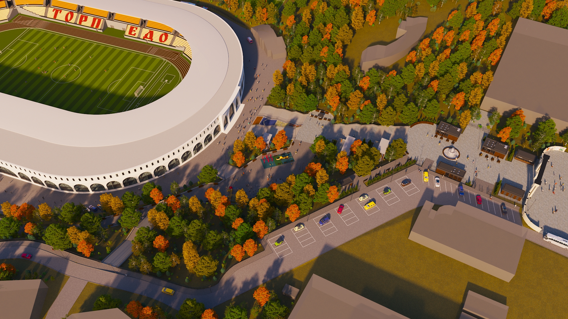 Проект предусматривает не только обновление самого стадиона, но и модернизацию прилегающей городской среды: создание пешеходных связей, благоустройство общественных пространств, что способствует интеграции комплекса в городскую структуру и повышению качества городской среды.