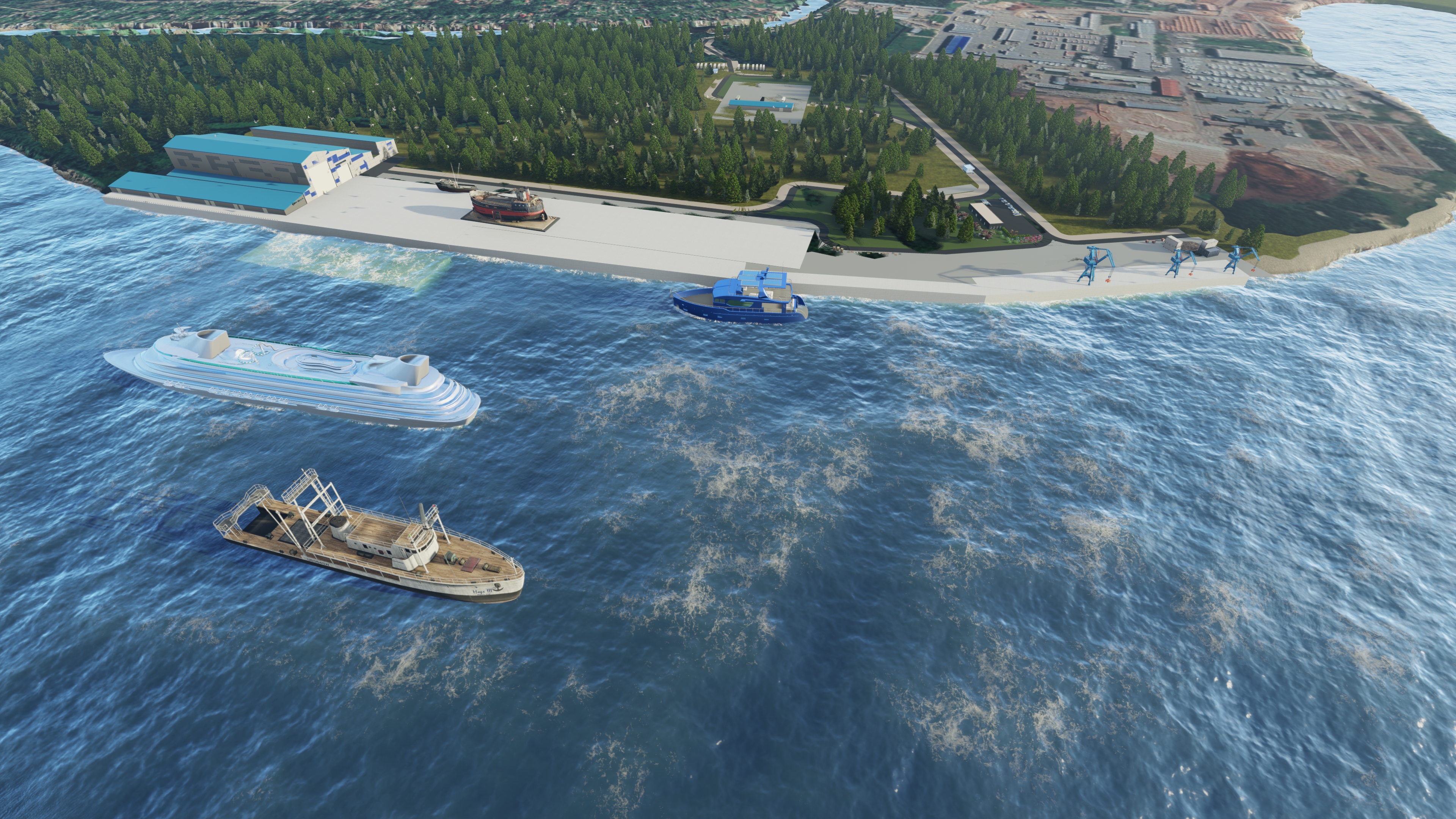 Специалистами компании определены параметры компетенций предприятия, включая ремонт корпусов, переоборудование, капитальный ремонт и техническое обслуживание различных типов судов. Разработаны принципы и технологии, которые будут использоваться для судоремонта. Также описаны технологии и организация процессов, проведен анализ экономической целесообразности и технической осуществимости проекта, подобрано необходимое оборудование, разработан комплексный план транспортной логистики предприятия. Проведена оценка капитальных затрат на строительство портовой инфраструктуры, дноуглубления, производственного и складского комплекса, административно-бытового корпуса, причального фронта и других объектов инфраструктуры. Также была поведена предварительная оценка необходимых энергетических мощностей и потребностей в инженерных ресурсах, разработаны укрупненные планировочные решения по участкам и зонам, составлен предварительный календарный график проектирования, строительства и получения согласований в рамках проекта.