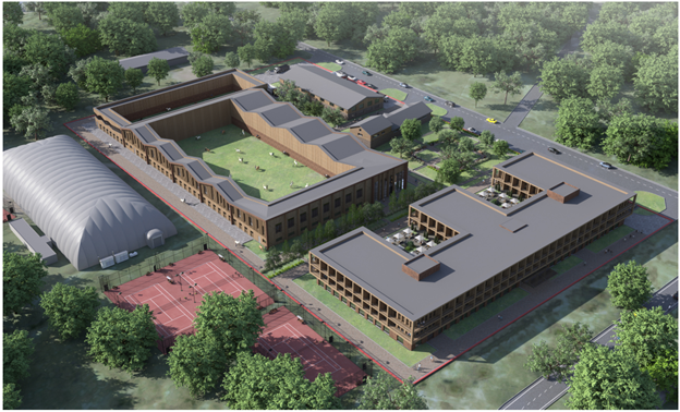 Проект с общим объемом инвестиций более 3 млрд руб. предполагает строительство в Санкт-Петербурге спортивно-общественного комплекса - гостиницы 4* на 150 номеров, ресторана, спа-зоны, манежного комплекса и тренировочного манежа.