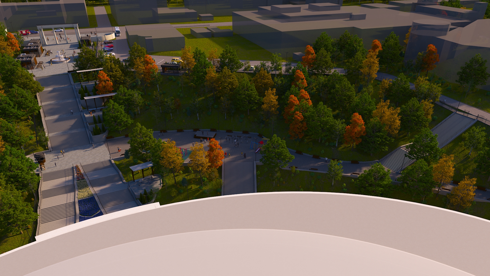 Проект предусматривает не только обновление самого стадиона, но и модернизацию прилегающей городской среды: создание пешеходных связей, благоустройство общественных пространств, что способствует интеграции комплекса в городскую структуру и повышению качества городской среды.